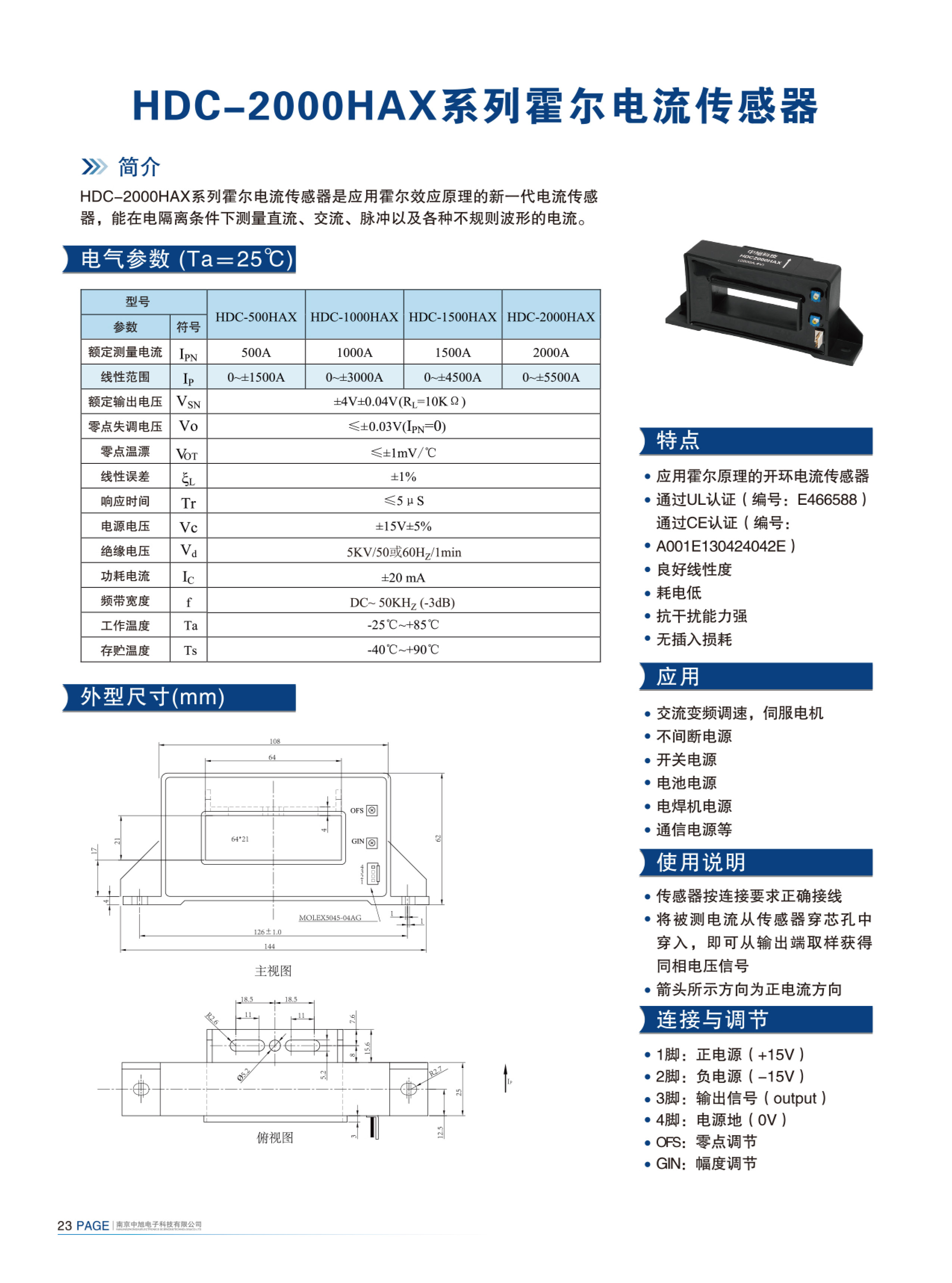 HDC-2000HAX系列霍爾電流傳感器是應(yīng)用霍爾效應(yīng)原理的新一代電流傳感器,能在電隔離條件下測量直流、交流、脈沖以及各種不規(guī)則波形的電流。